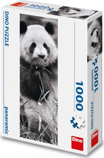 Uživajte u opuštanju slažući panoramske puzzle s motivom pande. 1000 dijelova, kvalitetna češka proizvodnja i crno-bijela fotografska predložak provjerit će vašu koncentraciju i zapažanje. Gotovu sliku možete podlijepiti i izložiti kao originalnu dekoraciju za stan ili ured.