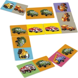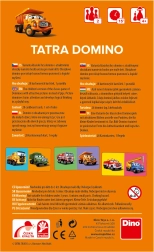 Domino DINO TATRA upoznaje djecu s legendarnim češkim teretnim vozilima i specijalkama. Uparivanjem sličica kroz igru vježbaju koncentraciju, opažanje i logičko razmišljanje. Zahvaljujući kvalitetnom kartonu igra je lagana, kompaktna i prikladna za putovanja, pa zabavlja djecu kod kuće i na izletima.