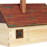 Osnovu čine precizne drvene letvice 9 × 9 mm nadopunjene papirnatim elementima koji dočaravaju realističan izgled prozora, vrata i krovnih dijelova. Maketa potiče finu motoriku, strpljenje i prostornu maštu. Za lijepljenje se preporučuje ljepilo Herkules (nije uključeno).
