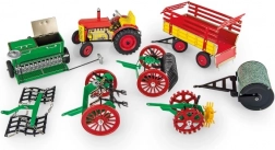 Set sadrži traktor Zetor s plastičnim kotačima i mehaničkim opružnim strojem koji se navija ključem. Nudi tri različite brzine naprijed, jednu brzinu unazad, neutralan položaj i ručnu kočnicu. Dodatna oprema uključuje: