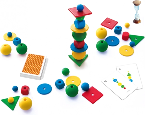 Očekuju vas 3 varijante igre: utrka za najbrže slaganje zadanog uzorka, gradnja što višeg tornja i vještinski režim s naglaskom na stabilnost i ravnotežu. Zahvaljujući raznolikom setu dijelova i 16 karticama s uzorcima svaka je partija drugačija i puna emocija.
