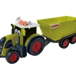 Traktor Claas s prikolicom pruža autentičan doživljaj farme za malu djecu. Igračka je izrađena od zelene plastike s crnim i crvenim elementima, a njezina je duljina približno 28 cm. Zahvaljujući slatkim očima koje krase traktor, donosi radost i osmijeh na dječja lica. Namijenjena je djeci od 12 mjeseci i dizajnirana s naglaskom na dječju sigurnost, sa zaobljenim kutovima i rubovima.