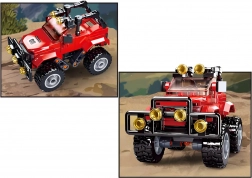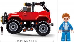 Izgradite akcijski terenac iz serije Sluban Town. Crveni džip s opruženim osovinama, sa 135 dijelova i 1 figuricom razveselit će djecu od 6 godina. Kocke su kompatibilne s LEGO, COBI i Mega Bloks, a jednostavna razina težine jamči brz uspjeh pri slaganju.