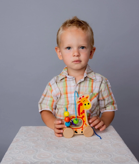 Ova multifunkcionalna igračka u obliku žirafe zabavit će djecu i pri vučenju i pri pomicanju perli po metalnim žicama. Na razigran način razvija finu i grubu motoriku, koordinaciju oko–ruka i pomaže u prvim koracima upoznavanja boja.