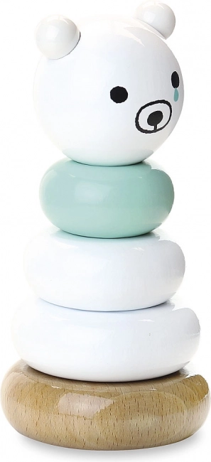 Ovaj elegantni slagajući toranj s medvjedićem u bijelo–mint kombinaciji i prirodnom drvenom dekoru idealna je prva edukativna igračka. Djeca vježbaju pravilno slaganje kolutića, razlikovanje veličina i ritam pokreta, dok nježne boje i simpatičan izraz medvjedića potiču znatiželju i mirnu igru.