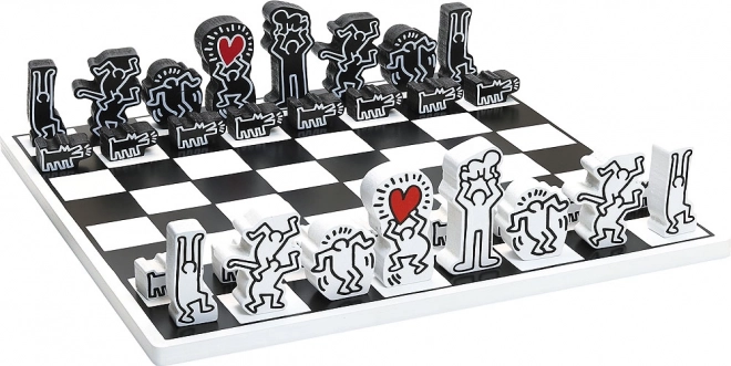 Otkrijte kultne drvene šahove s grafičkim dizajnom KEITH HARING – spoj klasične igre i moderné umjetnosti. Stilizirane crno-bijele figure s crvenim akcentima, kvalitetna izrada i praktična vrećica za pohranu čine ovaj set sjajnim poklonom i originalnom dekoracijom.