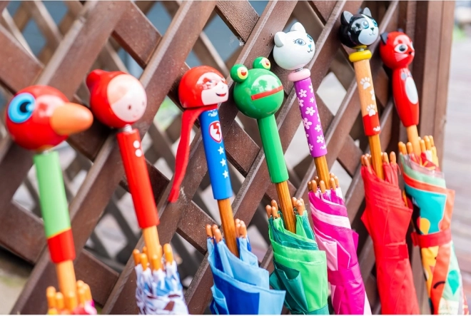 Naš dječji kišobran nosi razigrane uzorke koji uljepšavaju svakodnevne šetnje čak i za kišnog vremena. Ergonomsku dršku u obliku mačke dizajnirana je za udobno držanje i izrađena od kvalitetnog drva. Metalna konstrukcija osigurava izdržljivost i stabilnost.