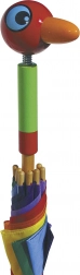 Ergonomska, lakirana drvena drška u obliku pačića osigurava udobno držanje i daje kišobranu jedinstven izgled.