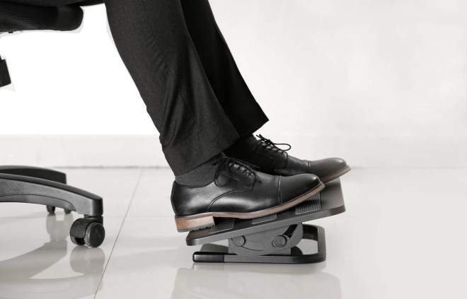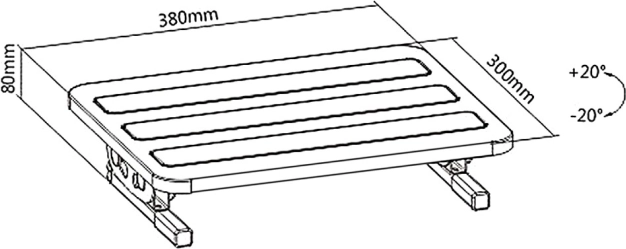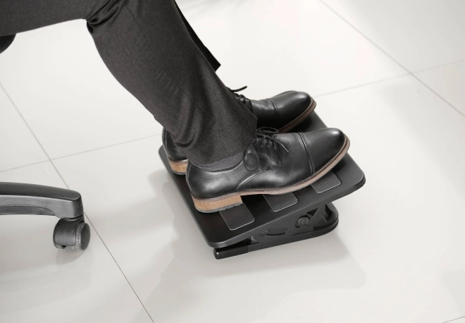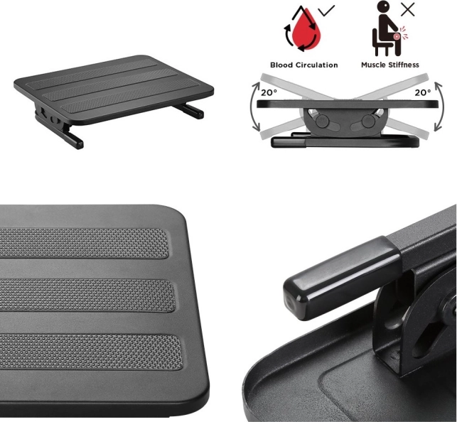 Velikodušne dimenzije 380 × 300 mm pružaju dovoljno prostora i za veća stopala. Oslonac pomaže održati pravilnu prokrvljenost nogu, smanjuje umor i povećava udobnost pri dugotrajnom sjedenju kod kuće i u uredu.