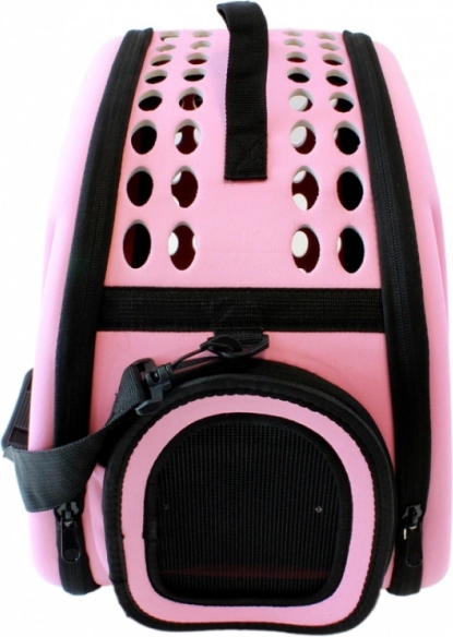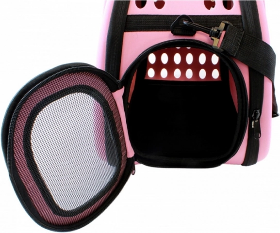 Prostrana i izdržljiva prijenosna torba za mačke i male pse u elegantnoj ružičastoj boji osigurava sigurno i udobno putovanje. Nudi čvrstu konstrukciju, obilnu ventilaciju i mrežasta vrata na patentni zatvarač za lak pristup. Praktična gornja ručka i podesivi remen olakšavaju nošenje kod kuće i na putu.