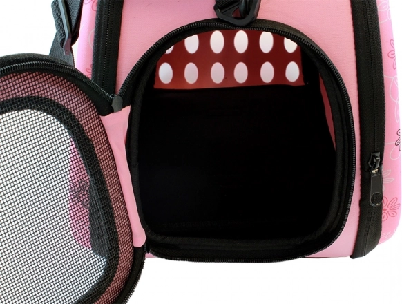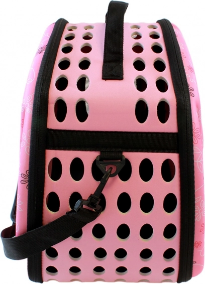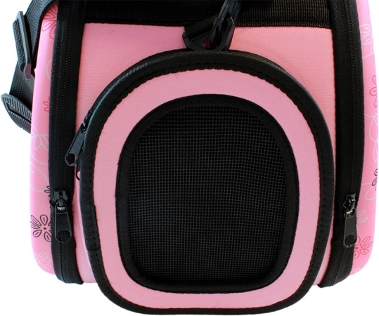 Ova praktična transportna torba spaja malu težinu s visokom izdržljivošću. Čvrst materijal s ojačanjem od EVA pjene štiti ljubimca, dok sustav brojnih ventilacijskih otvora i mrežastih dijelova osigurava stalni dotok svježeg zraka. Dvostruki patentni zatvarač omogućuje praktičan pristup s obje strane.