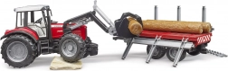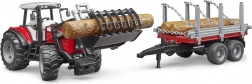 Set BRUDER donosi legendarni traktor MASSEY FERGUSON 7480 s prednjim utovarivačem i prikolicom za drvo za maksimalno realističnu igru. Zahvaljujući funkcionalnim detaljima, poput otvarajućeg poklopca motora, upravljive prednje osovine i mekih guma, djeca lako savladavaju utovar i prijevoz trupaca.