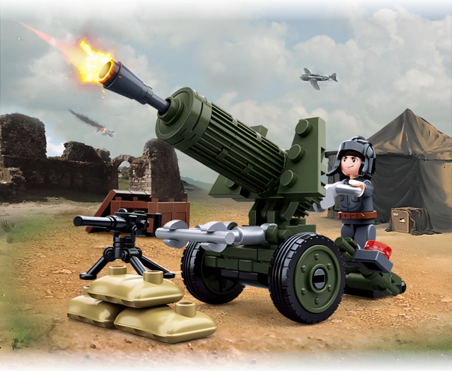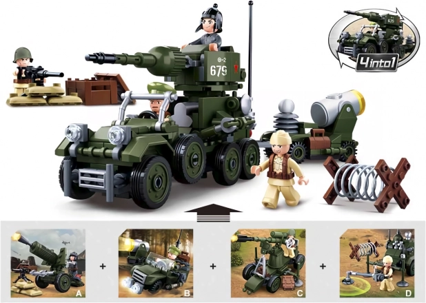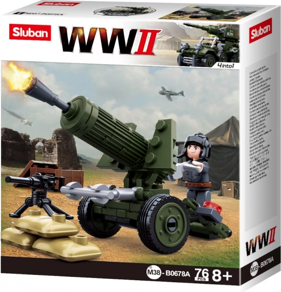 Mini građevni set borbene tehnike iz serije WWII 4u1, čijim sastavljanjem nastaje mogućnost izrade velikog cjelovitog modela topničkog tegljača. Inovativne Sluban kocke mogu se kombinirati sličnim setovima mnogih drugih važnih proizvođača. Izrađene su od kvalitetne, neškodljive i izdržljive ABS plastike. Svaki set dolazi s uputama za sastavljanje i pakiran je u šareno tiskanoj kartonskoj kutiji. Glavne značajke: 88 dijelova, 1 figurica, srednja težina, kompletiranjem serije može se sastaviti veliki model, inovativne figurice s rotirajućim i nagibnim dijelovima tijela, kompatibilno sa setovima drugih proizvođača