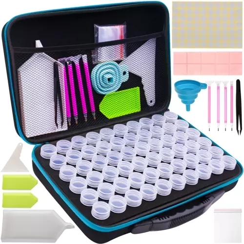Ovaj praktičan set olakšava svakom ljubitelju dijamantnog slikanja organizaciju i samu izradu. Sve je sigurno pohranjeno u čvrstoj, izdržljivoj futroli s patentnim zatvaračem, uključujući pregledno smještene bočice u pjenastom umetku i mrežasti džep za dodatke. Zahvaljujući ovom rješenju, svi kamenčići i alati uvijek su vam pri ruci i savršeno razvrstani.