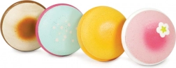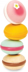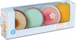 Četiri drvene makrone u nježnim bojama oživjet će svaku igru kavane ili slastičarnice i potaknuti dječju maštu.