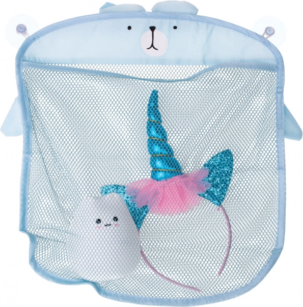 Ovaj plavi organizator idealan je za kupaonice s djecom – privlači razigranim dizajnom, potiče na pospremanje i održava prostor čistim. Prostrani mrežasti džep prima igračke za kadu i kupaonske sitnice te se nakon kupanja brzo suši.