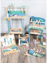 Vijci, matice, čavli, ploče s rupama i drveni alat potiču djecu na kreativnu igru i vježbanje koordinacije.