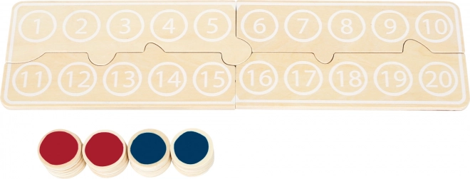 Obojeni žetoni i pregledna ploča s brojevima 1–20 omogućuju djeci lako slagati zadatke i vidjeti rezultate pred očima.
