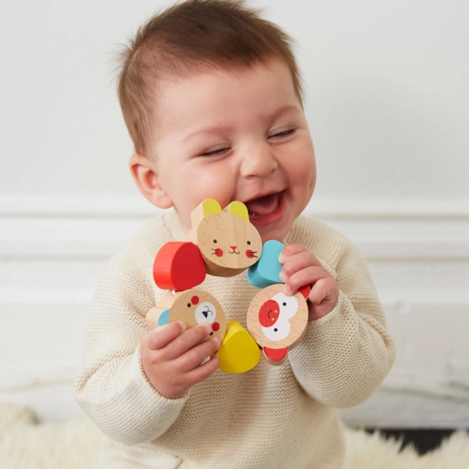 Drvena grickalica dizajnirana je tako da odgovara malim ručicama koje uživaju u sigurnom istraživanju različitih tekstura i oblika. Savršena je tijekom rasta prvih zubića zahvaljujući prirodnim materijalima i bojama na vodenoj bazi, što jamči sigurnost pri korištenju.