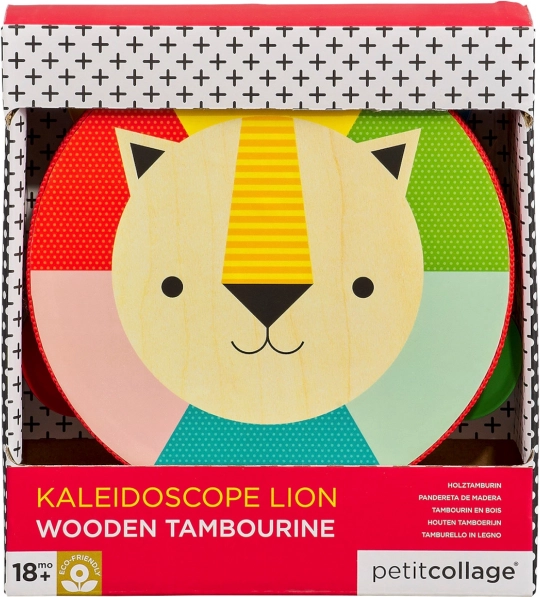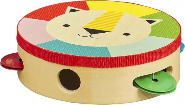 Ova kvalitetna drvena tamburina od topolove šperploče razveselit će male glazbenike i njihove roditelje. Lako i udobno držanje, sigurne biljne boje i lak na bazi vode osiguravaju bezbrižnu igru. Veseo lavlji motiv i izražajne boje podupiru osjećaj za ritam, prepoznavanje boja i motoričke vještine.