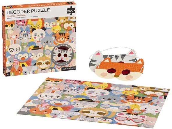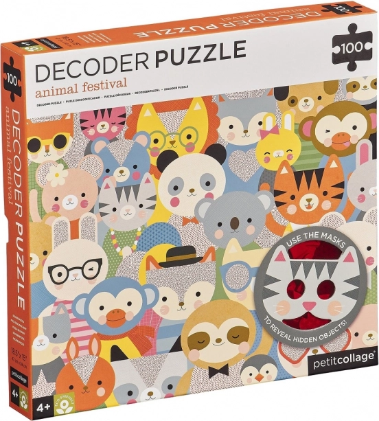 Otkrijte zabavnu dekodirajuću slagalicu od PETIT COLLAGE s motivom životinjskog festivala. Složite slagalicu od 100 dijelova i uz pomoć 3D naočala/maske tražite skrivene predmete u užurbanoj sceni. Kvalitetna izrada od FSC certificiranog recikliranog papira i netoksičnih boja jamči sigurnu igru za djecu od 4 godine.
