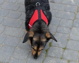 Zahvaljujući brzo-otpuštajućoj kopči i podesivim trakama, ormu lako stavljate i živahnijem psiću. Metalna omčica za pričvršćivanje povodca pruža sigurnost i kontrolu tijekom šetnje.