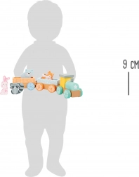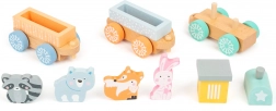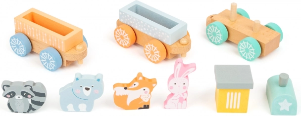 Drveni vlakić je sjajna zabava za djecu od 18 mjeseci. Ovaj prekrasan set sadrži šarene vagone koji se lako spajaju te četiri figure slatkih životinjica - lisica, zec, rakun i medvjed. Lokomotiva i vagoni izrađeni su od kvalitetnog drveta i dizajnirani su tako da budu sigurni za najmanje. Zahvaljujući pastelnim bojama i jednostavnoj konstrukciji, ovaj set je idealan za razvoj mašte i motoričkih vještina vašeg djeteta.