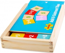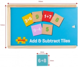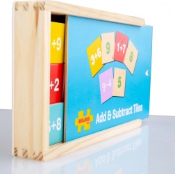 Drveni edukativni set s 81 igraćom pločicom nudi raznolike mogućnosti vježbanja zbrajanja i oduzimanja u rasponu 1–9. Zahvaljujući kompaktnoj kutijici idealan je za dom, vrtić i putovanja. Djeca kroz igru usvajaju osnovne računske vještine te istovremeno razvijaju koordinaciju ruke i oka.