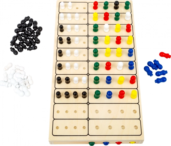 - Tabla i štapići: Igra se sastoji od drvene ploče s rupama i obojenih štapića koji nude različite kombinacije boja.