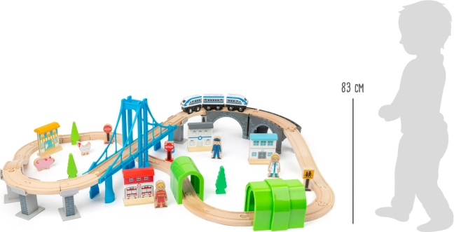 Predstavljamo vam sjajnu drvenu željezničku prugu s mostovima brenda small foot, koja nudi 60 dijelova za neograničenu zabavu! Ova pruga omogućuje djeci stvaranje različitih željezničkih ruta s mostovima, tunelima i mnogim drugim uzbudljivim elementima.