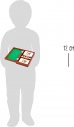 Ova kvalitetna drvena kutija djeluje kao malo putno kasino: dva puna špila karata (2×54 karata) i set kockica u preglednim pretincima uvijek su spremni za igru. Unutarnja zelena filcana podloga ublažava udar kockica i osigurava ugodan komfor pri igri, dok metalni zasun drži sve sigurno zatvorenim.