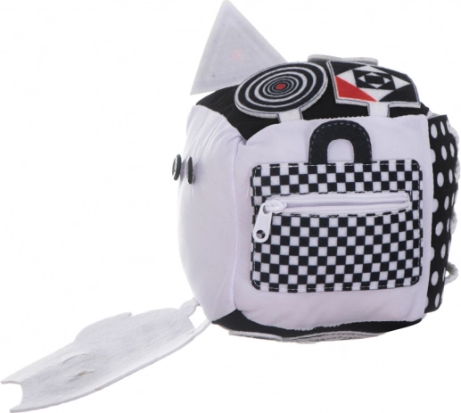 Ova mekana senzorička kocka učinit će svaki dan vašeg malog istražitelja izvanrednim. Kontrastni uzorci i crno-bijele boje stimuliraju vid, dok različite teksture pomažu u razvoju dodira. Kocka je opremljena zvečkom i šuškavim elementima koji privlače sluh čak i onih najmanjih.