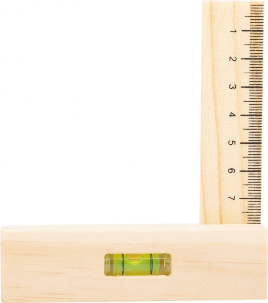 Sadrži kutnik s libelom, ključ, odvijač, čekić, kliješta i bušilicu s 3 nastavka.