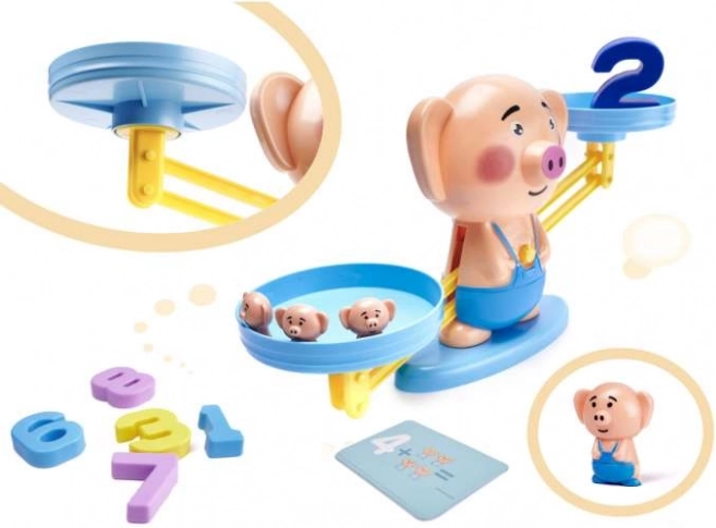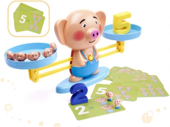Set sadrži sve potrebno za trenutačnu igru: vagu u obliku praščića, 30 kartica sa zadacima, 19 malih praščića i brojke 1–10. Kvalitetna plastična izrada osigurava izdržljivost i sigurnu uporabu za djecu od 5 godina.