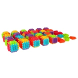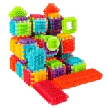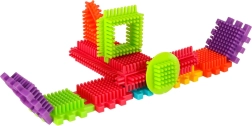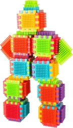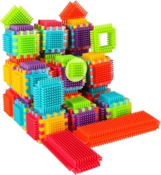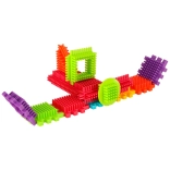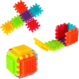 Blokovi su izrađeni od kvalitetne plastike, vrlo su lagani, fleksibilni i ujedno izuzetno izdržljivi. Pomažu pri učenju novih oblika i boja te razvijaju manualne vještine. Blokovi su dizajnirani tako da stimuliraju djetetova osjetila u razvoju: vid zahvaljujući izrazitim bojama i dodir zahvaljujući originalnom obliku i načinu spajanja. Blokovi koji pružaju sjajne mogućnosti za kreativnu igru! Osim tradicionalnog kombiniranja kao kod uobičajenih blokova, ove blokove možete spajati i cijelom plohom stranice, čime dobivate dodatnu mogućnost izrade. Mogu se koristiti za gradnju zgrada, robota i drugih konstrukcija!