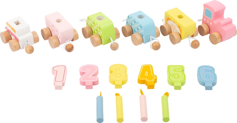 Zahvaljujući brojevima od 1 do 6 i svijećama, vlakić razvija dječje računske sposobnosti i vještinu raspoznavanja boja.