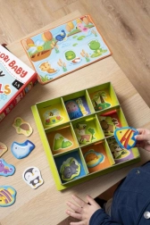 Montessori kutijica Životinje djeci donosi raznolik svijet prirode kroz jednostavno razvrstavanje i povezivanje. Djeca uče razlikovati životinje i njihova prirodna staništa, razvijaju logičko razmišljanje i koordinaciju oko–ruka. Zahvaljujući šarenom i intuitivnom dizajnu, igru brzo usvajaju i oni najmlađi.
