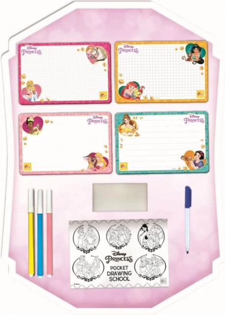 Otkrijte čaroliju stvaranja s prijenosnim setom za male umjetnike. Putna škola crtanja – Disney princeze nudi bojanke s uputama, 4 ploče koje se mogu brisati i šarene flomastere za beskrajnu zabavu kod kuće i na putu. Idealno za djecu od 3 godine koja vole crtanje i svijet Disney princeza.