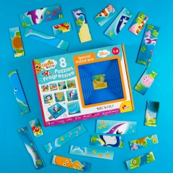 Progresivne slagalice CAROTINA Baby donose djeci radost slaganja već od samih početaka. Svaka od 8 slagalica ima različit broj dijelova i postupno povećava zahtjevnost, pa dijete prirodno razvija vještine bez frustracije. Tematske ilustracije iz morskog svijeta motiviraju na otkrivanje i igru.