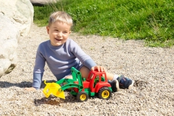 Otkrijte robustan dječji traktor s utovarivačem, stvoren za igru kod kuće i u vrtu. Zahvaljujući čvrstoj konstrukciji i kvalitetnoj plastici, spreman je za igru u pijesku, na dvorištu i u dječjoj sobi. Prednja žlica jednostavno se upravlja te potiče razvoj fine motorike i mašte.