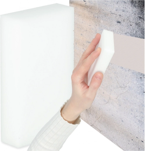 Čarobna spužva za čišćenje je univerzalni alat za kućanstvo i automobil. Bez kemikalija može ukloniti tvrdokorne mrlje s različitih površina kao što su fuge, zidovi, tapecirung ili kontrolna ploča automobila. Prikladna je za sve površine i ne uzrokuje ogrebotine.
