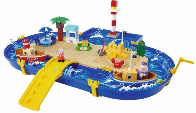 Prekrasni svijet Peppa Pig nudi bezbroj mogućnosti za kreativnu igru s vodenim motivom. Ovaj veliki vodni svijet sadrži 47 različitih dijelova za igru, uključujući brodove i omiljene likove iz animirane serije Peppa Pig. Uključeno je: