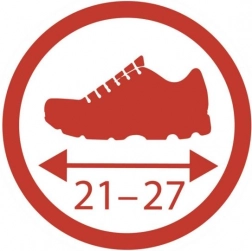 Remeni i elastičan oblik omogućuju lako stavljanje na različite dječje cipele i pouzdano držanje i pri živahnoj vožnji.