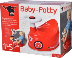 Kahlica BIG New Bobby Car odlična je motivacija za djecu koja uče koristiti kahlicu. Zahvaljujući atraktivnom dizajnu autića s volanom i trubom, svakodnevna potreba postaje zabavan ritual. Ergonomično sjedalo s visokim naslonom pruža udobnost i pravilnu potporu leđima.