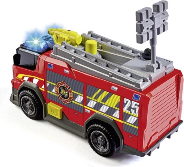 Priredite djeci akcijske spasilačke misije s kompaktним vatrogasnim vozilom duljine 15 cm na slobodni pogon. Nudi svjetlosne i zvučne efekte, ručni vodeni špric i pokretljivu ljestvu za još realističniju igru. Idealno za male vatrogasce od 3 godine nadalje.