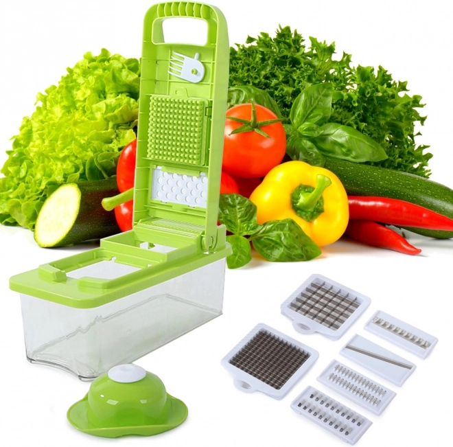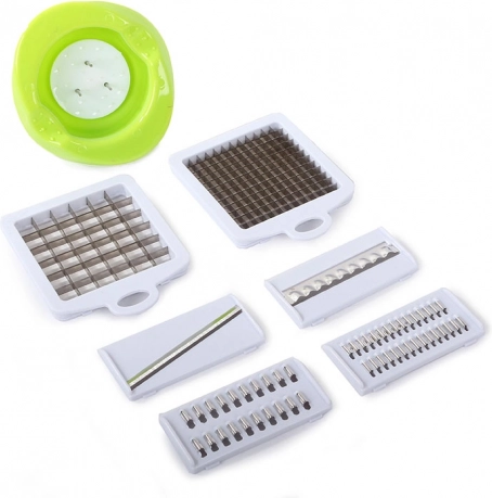 Praktični rezač i ribež idealan je pomagač za svaku kuhinju. Munjevito narezat će voće, povrće, kuhana jaja i sir na kockice, ploške i trakice, a može izvesti i valovite rezove. Zahvaljujući prozirnoj posudi s poklopcem zapremine 1,5 l, pripremljene namirnice možete odmah pohraniti u hladnjaku. Nehrđajuće oštrice vrlo su oštre i osiguravaju čist rez bez gnječenja namirnica.