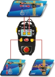 Vitlo s užetom kojim se upravlja daljinskim upravljačem omogućuje glatko podizanje i spuštanje kuke ili kliješta. Otvorena kabina spremna je za figuricu visine oko 7,6 cm (nije uključena), što potiče priču i konstrukcijsku igru. Igračka je izrađena od izdržljive plastike i odličan je izbor za male zaljubljenike u građevinske strojeve.