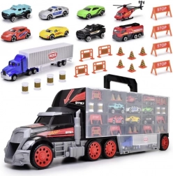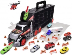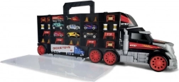 Veliki kamionski kofer spaja spremnik i set za igru u jednom. Otvorivi pretinci prime cijeli set vozila i dodataka, a praktična ručka olakšava nošenje. Ručni launch mehanizam u kabini pretvara kamion u trkaću stazu i brine se za dinamične startove.