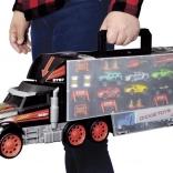 Veliki kamionski kofer s ručkom za lako nošenje skriva bogat set za igru – 7 metalnih autića, teretni kamion i helikopter. Zahvaljujući ručnoj izbacivačkoj funkciji iz kabine djeca mogu pokrenuti utrku u sekundi. Robusna izvedba i duljina 62 cm jamče puno zabave te praktično spremanje i organizaciju kolekcije.