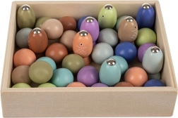Ploča promjera 22 cm izrađena je od izdržljivog drva i dopunjena papirnatom podlogom s motivom oceana. Bogat set elemenata omogućuje različite varijante igre – od pecanja riba preko premještanja kuglica do natjecanja na vrijeme.